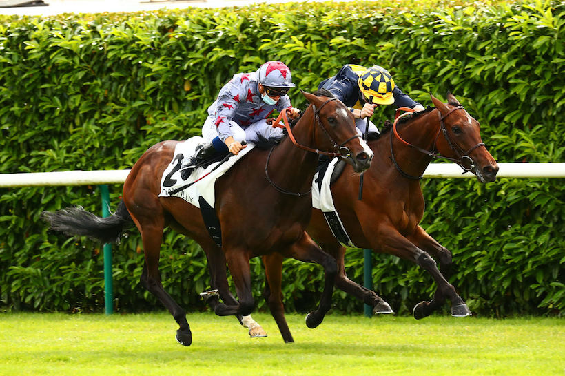 After travelling behind the front-runner Valdarann (Siyouni), Coachello (Dunkirk) won by a short neck in the very last strides as Sport Coupé (Toronado) finished well in third, two lengths down the field.