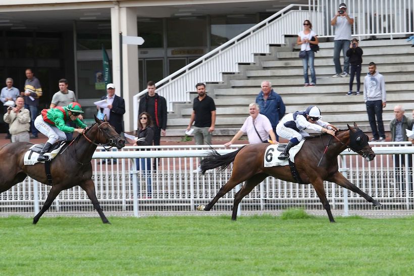 Same story than the previous race here with another leader holding off her rival as Audacious Girl beat the favourite Oleska (Excelebration). The winning filly is homebred by Francis Teboul's Gemini Stud and Michel Haski. They had bought her dam Firuza in foal to that filly for €13,000 at the 2014 Arqana Breeding sale. Winner once, in a 7f handicap at Dresden in Germany, she also gave a filly by Gemix, a hrudling champion for owner Francis Teboul. Firuza's dam won 7 races in UK and USA, including a 5f Listed at Sandown, the Dragon Stakes.