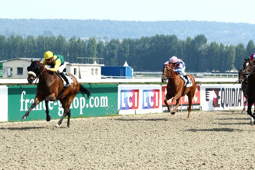 Facile lauréate, de bout en bout et par plus de deux longueurs, l’alezane Sweety Dream s’est présentée au départ du Prix des Marettes, le 8 août dernier à Deauville, mais elle s’est retournée dans sa stalle et a été déclarée non-partante alors qu’Efaadah s’en allait gagner la course (elle a échoué de peu dans le Prix d’Aumale-Gr3 le jour des débuts réussis de celle qui faillit être son adversaire à Deauville). Sage cette fois, Sweety Dream a donc complètement dominé la scène, très au-dessus du lot.