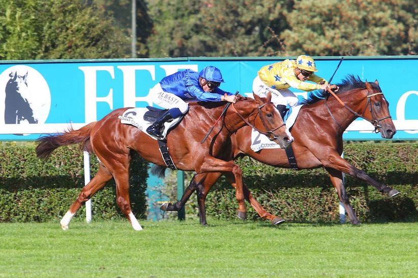 Élevée en Espagne, Italia bénéficiait de sept livres d’avantage sur sa rivale puisqu’elle était montée par l’apprenti de l’écurie Laffon-Parias.