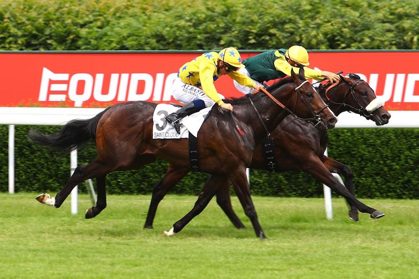 Quatrième pour ses débuts sur 2 100 mètres à ParisLongchamp (dans le sillage notamment d’Enchanting Skies et My Sister Nat, qui ont confirmé ensuite à un meilleur niveau), Villa Rosa (Doctor Dino) a pris sa revanche sur 2 400 mètres en se rapprochant en dehors à flanc de peloton pour dépasser les leaders au début de la ligne droite et résister ensuite sûrement aux retours de Waheebah (Camelot) et de Gipsy Song (Makfi).