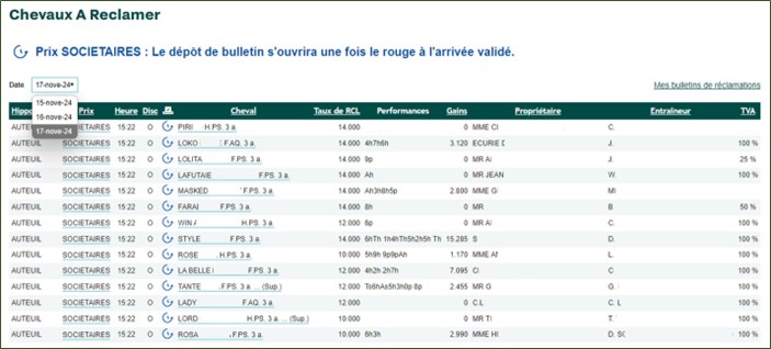 Dans le cadre de l’enrichissement de son offre de services numériques mis à disposition des professionnels des courses de Galop, France Galop annonce le lancement d’une innovation très attendue : la possibilité de déposer en ligne, via l’espace professionnel, des bulletins de réclamation lors des courses à réclamer. Le lancement de la phase pilote débutera le 4 décembre 2024 sur l’Hippodrome de Deauville-La Touques. Elle sera déployée dans un premier temps en semaine uniquement et sur certains hippodromes : Auteuil, Chantilly, Deauville et Cagnes-sur-Mer (uniquement durant le Meeting de Plat pour ce dernier). La nouvelle organisation associera :